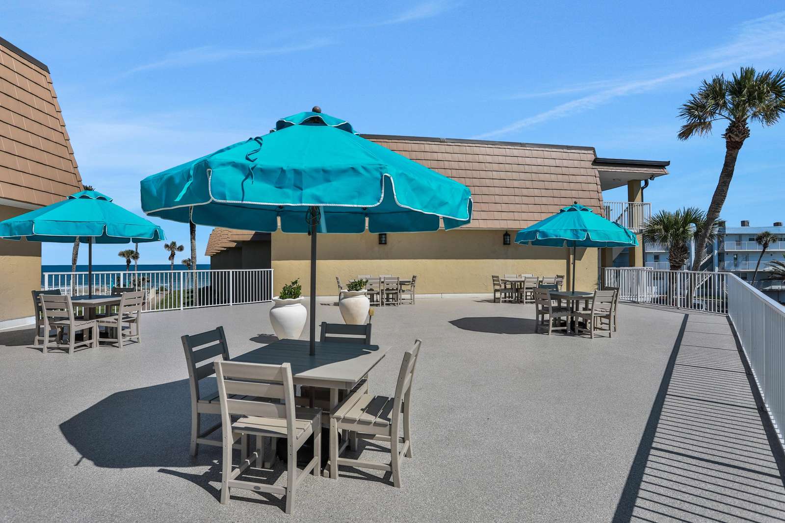This unit boasts a private patio with panoramic ocean views, perfect for enjoying your morning coffee or watching the sunset over the water. You'll also have access to a shared outdoor pool as well as a private boardwalk that leads directly to the beach.
