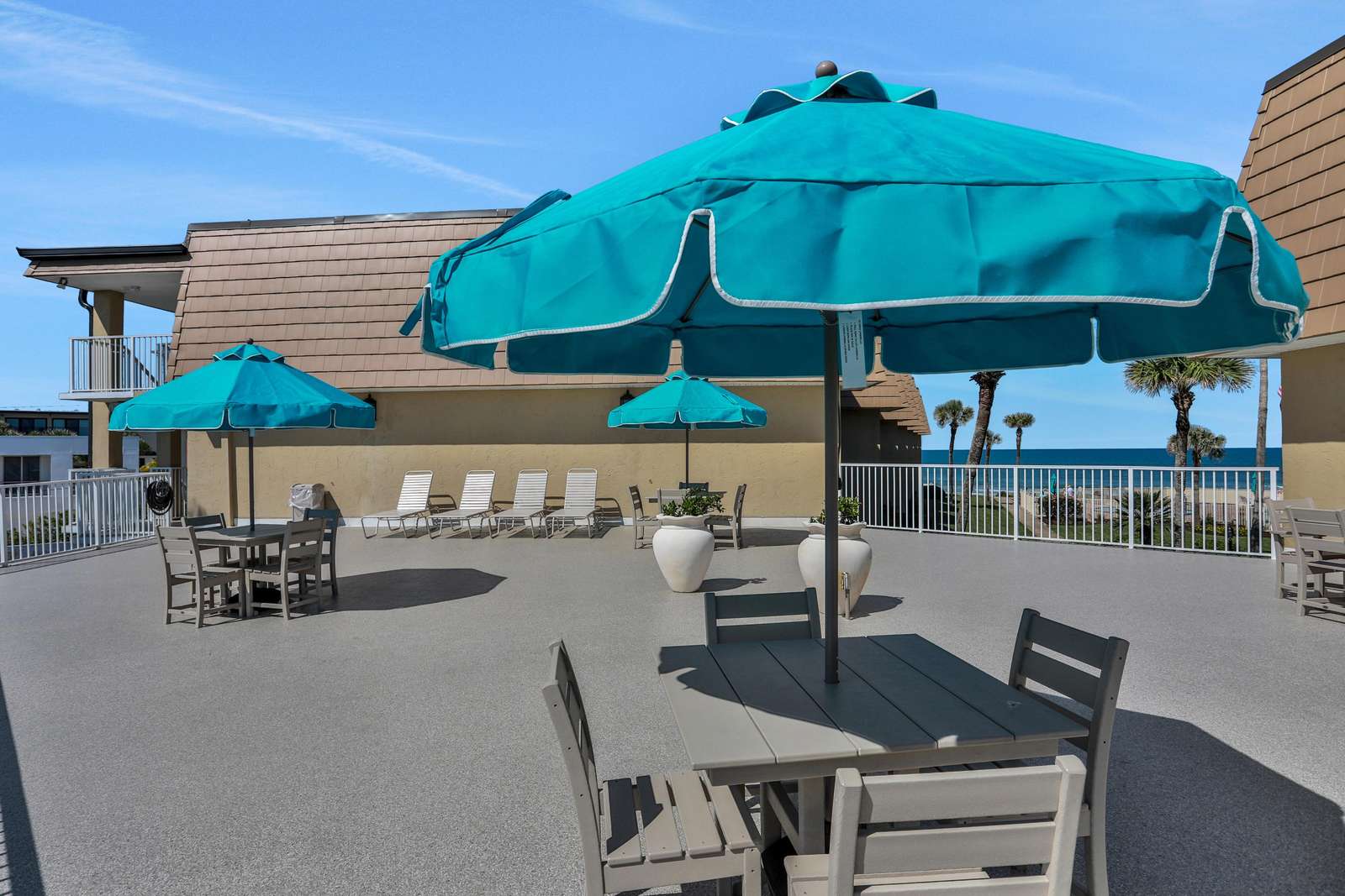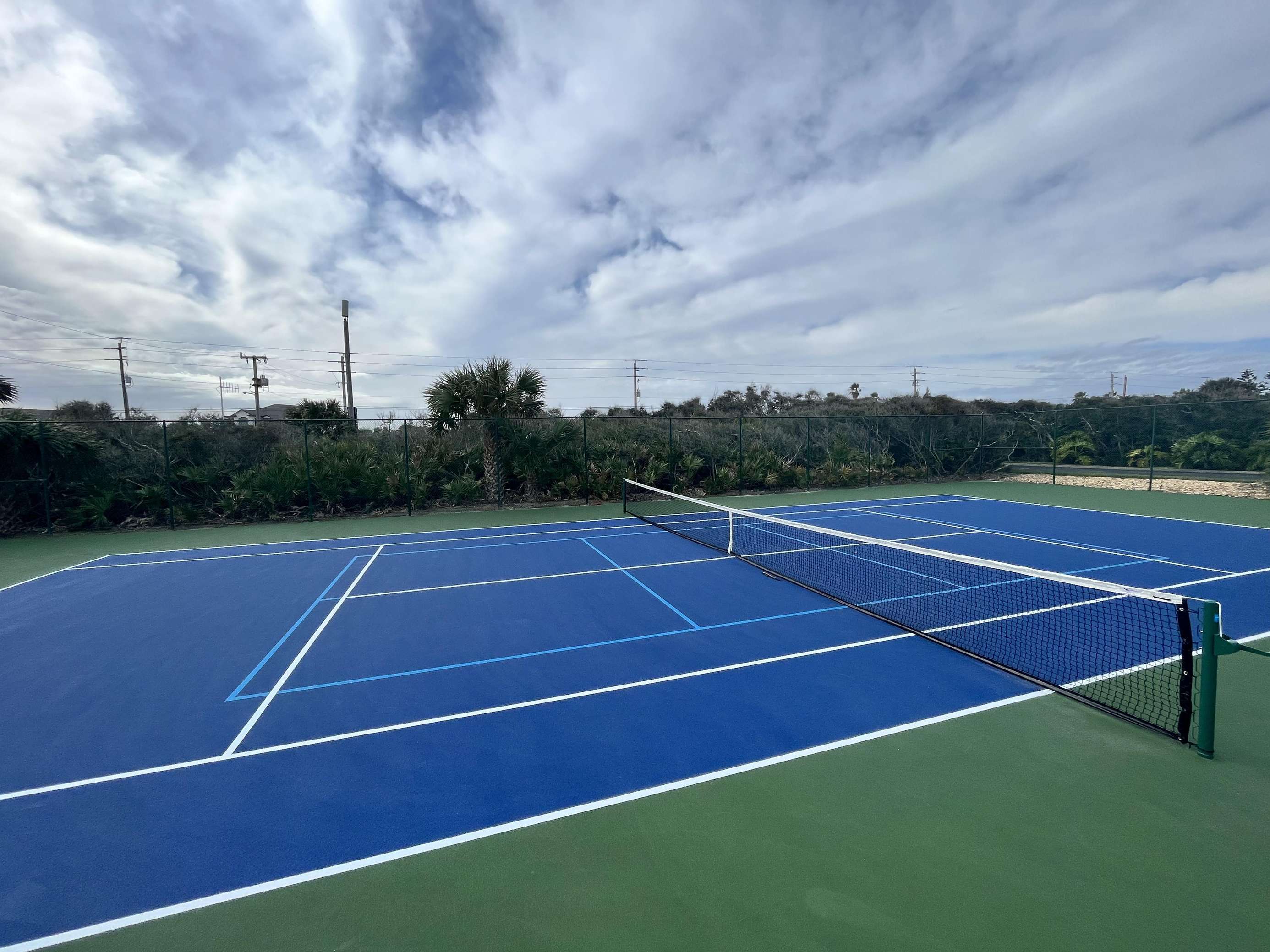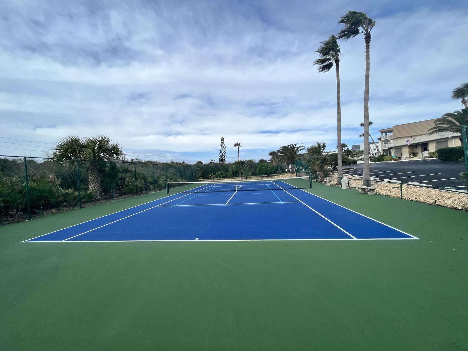 Wi-Fi and streaming service allow guests ready access to their devices and favorite apps. Amidst the impeccably maintained, landscaped grounds of Coquina, guests enjoy its sparkling Olympic-sized swimming pool and kiddie pool, tennis and pickle ball courts, on-site laundry, and a community deck with dining tables and grilling station below. A unique feature of this deck is the unobstructed, simultaneous views it offers of both the Intercoastal Waterway and the Atlantic beach – a truly rare experience!