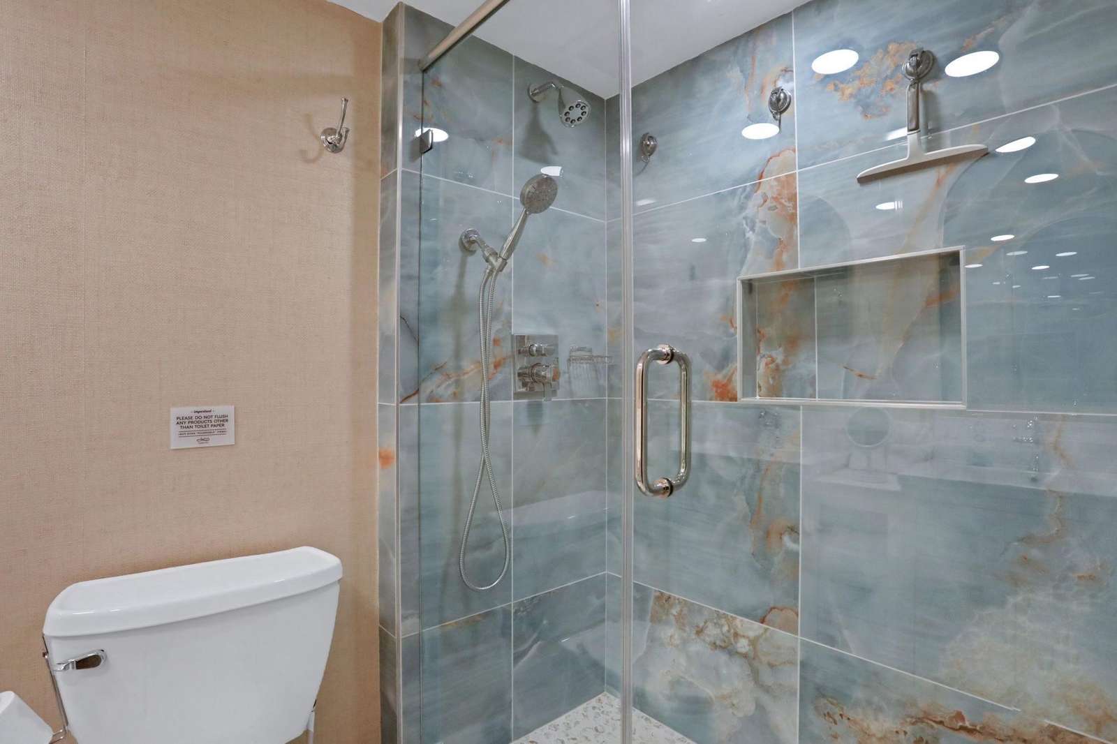 The upstairs master retreat features a king-sized bed, ceiling fan, an extra spacious closet, smart television and private bath with a step-in, custom-tiled shower, dual vanities, and luxurious towels and essential toiletries. The second bedroom offers a Queen sized bed and 2 single bunk beds with access to the second full bath, also thoroughly upgraded. An extra-large water heater and deluxe showerheads, with a hand-held option, assure everyone a perfectly rejuvenating shower.